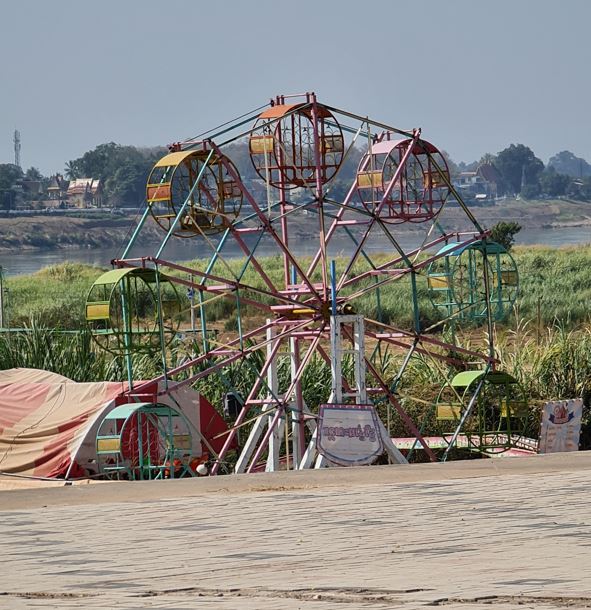 Covid restrictions have pretty well eliminated tourism in Laos. This is part of an abandoned circus by the Mekong. Photo: Simon Brown