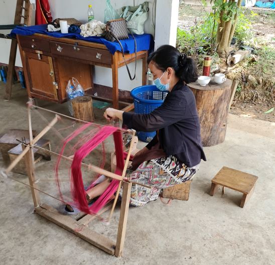 As with the PuKyo guest house, we were among the first tourists to visit the farm in more than two years. During that time they had continued their work, growing trees and raising silkworms, then collecting, spinning, dyeing and weaving the silk they got from the animals’ cocoons. With the silk they make extraordinarily beautiful clothing and accessories such as bags and scarves.
