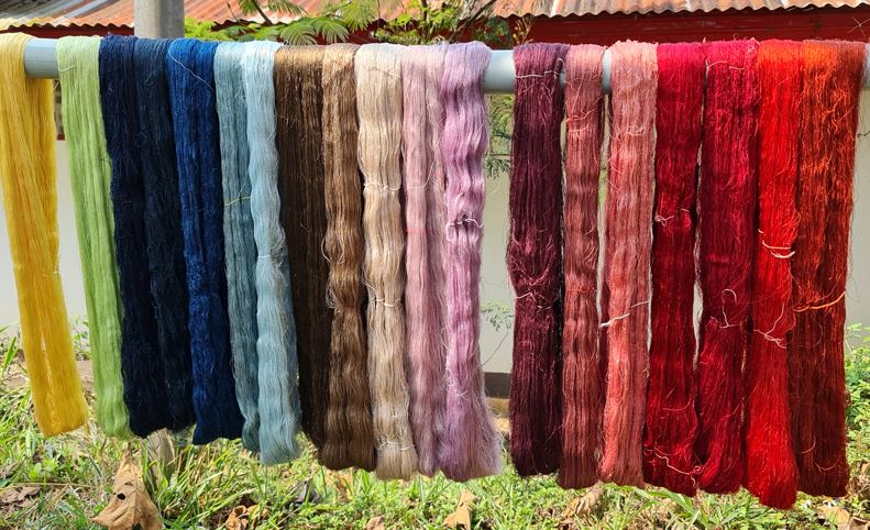 All the silk is dyed with colours made from locally sourced leaves, berries, bark and roots.